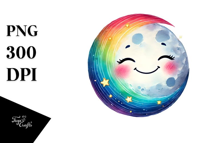 Simple Sticker Summer Colorful Flower Png Moon Smiling Sublimation