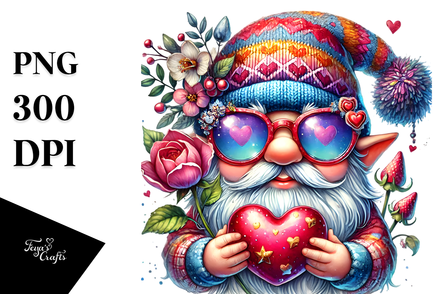 Colorful Valentines Gnome with Heart Sunglasses PNG example image 1