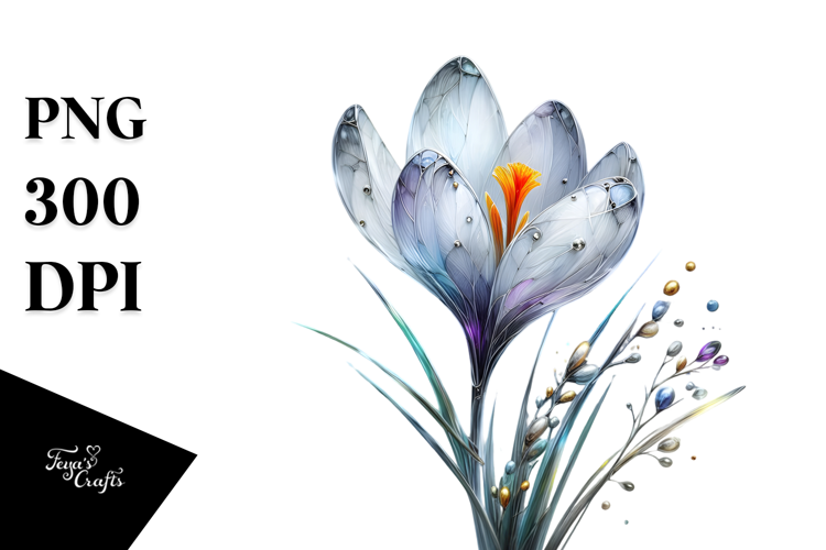 Sticker Summer Flower Png Sublimation Crocus Watercolorsplash Glassmaterial Metallicinsertions