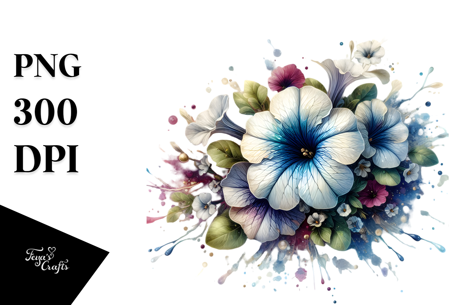 Sticker Summer Flower Png Sublimation Petunia Watercolorsplash Glassmaterial Metallicinsertions