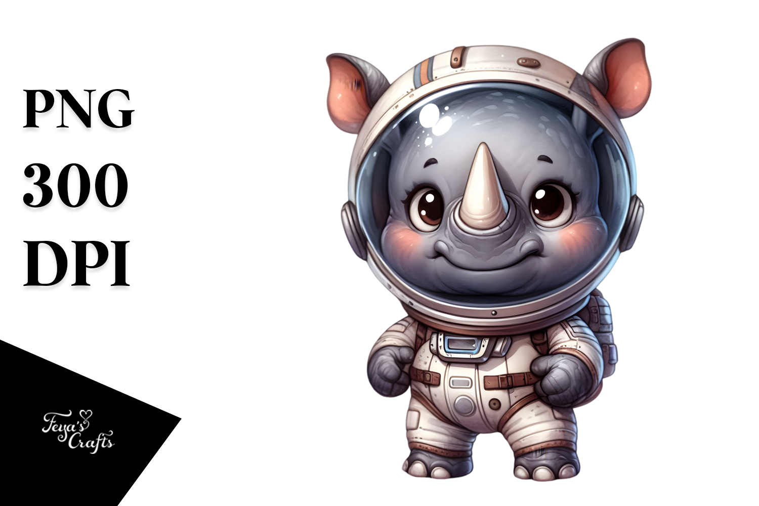 Energetic Baby Rhino in Watercolor PNG example image 1