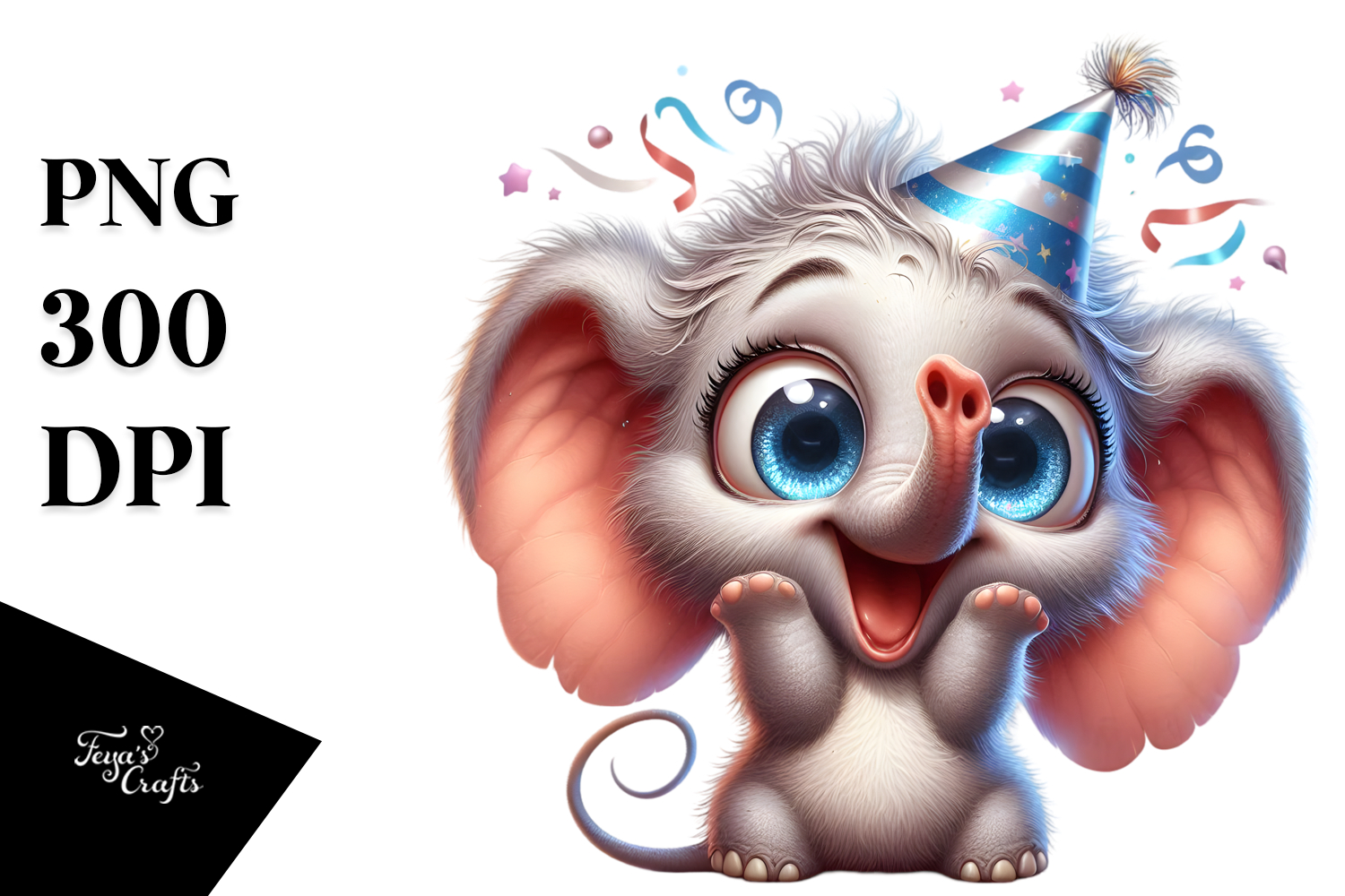 Cartoon Whimsical Elephant Silly Vectorart Partyhat Anthropomorphicfeatures Furtexture Glitteryeyes