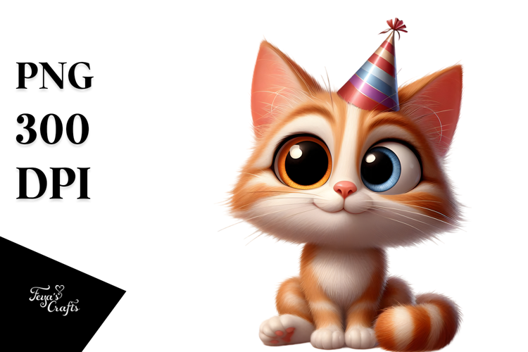Cartoon Kitten Sublimation Whitebackground Partyhat Anthropomorphicfeatures Cross-eyedexpression