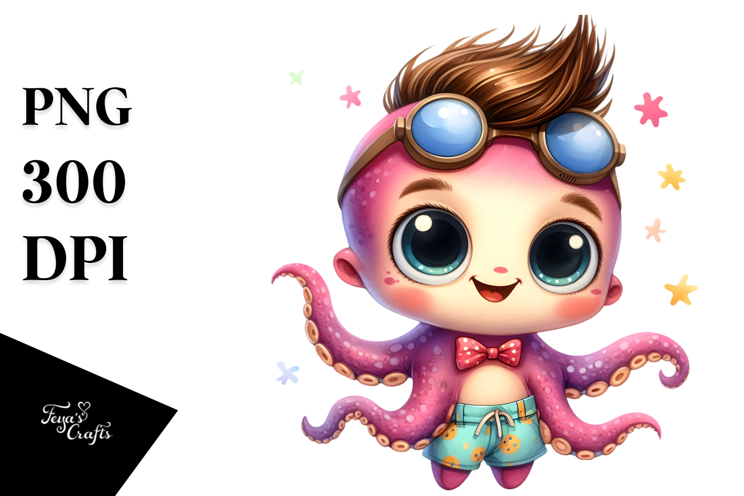 Cute Baby Octopus with Cool Haircut PNG example image 1