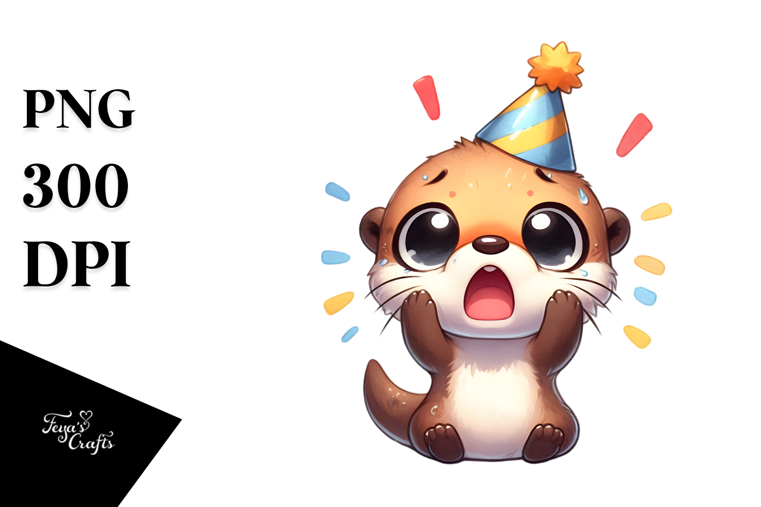 Ridiculously Cute Otter with Party Hat PNG example image 1