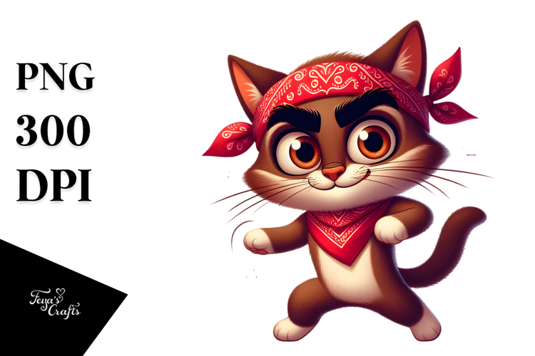 Silly Cartoon Kitten with Bandana PNG example image 1