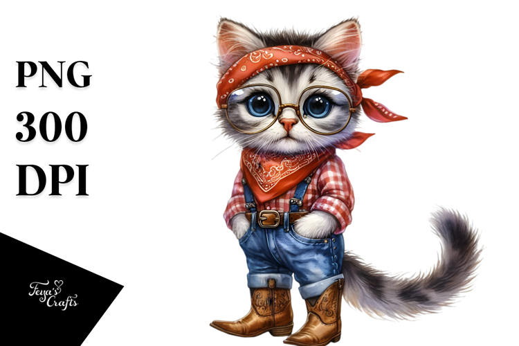 Watercolor Cat Big Eyes with Exquisite Accessories | Sticker example image 1