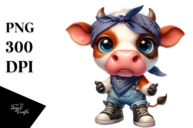 Clipart Bandana Sublimation Whitebackground Babycow Largeshoes Standingup Confusedexpression