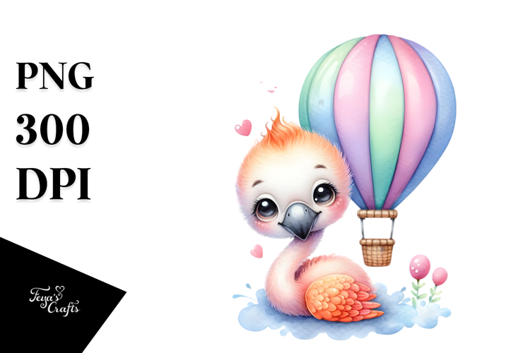 Colorful Baby Flamingo Hot Air Baloon Cuddling Clipart example image 1