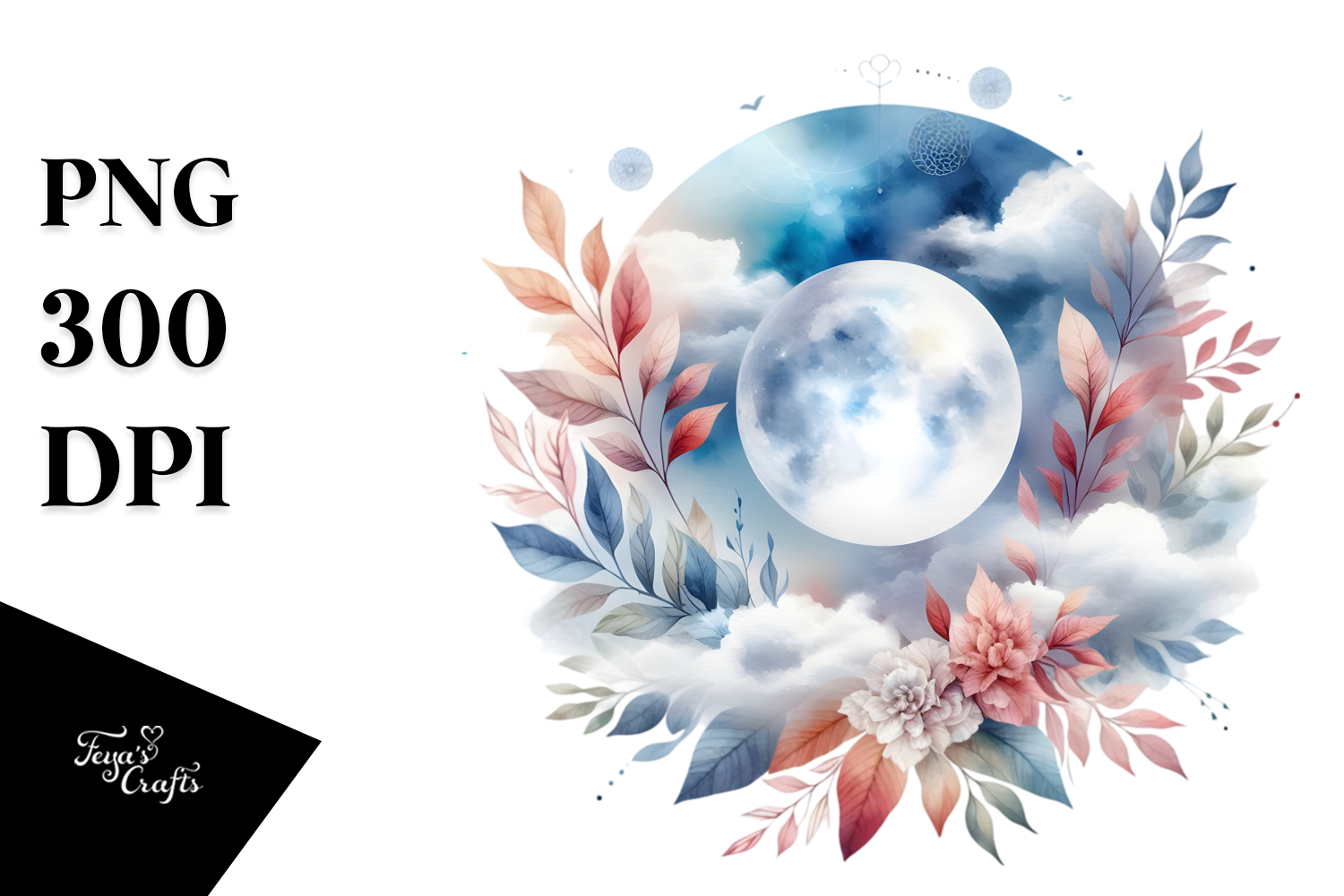 Vibrant Abstract Moon Foliage Clouds | Sublimation Clipart