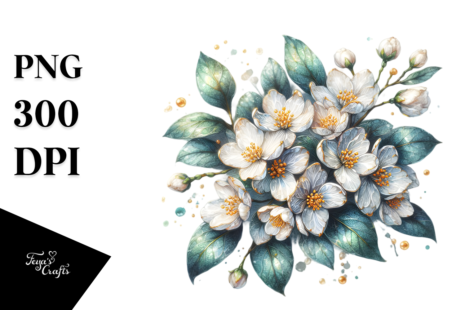 Watercolor Sticker Summer Colorful Flower Golden Png Glass Sublimation