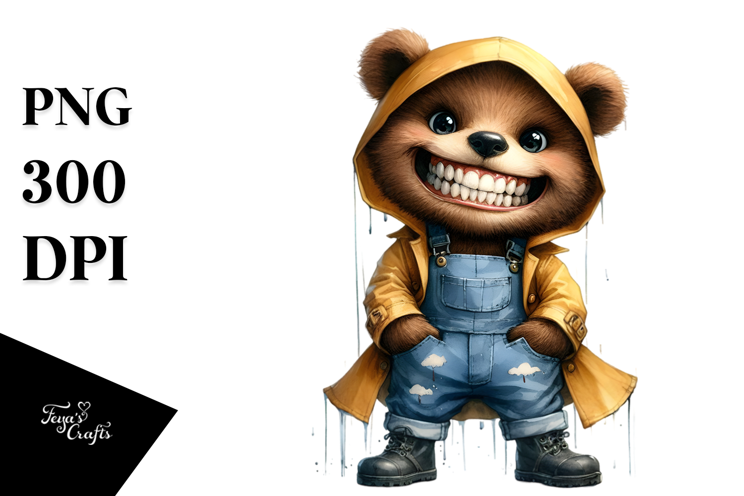 Clipart Expressive Sublimation Raincoat Contempt Bigeyes Babybear Farmjeans Standingup