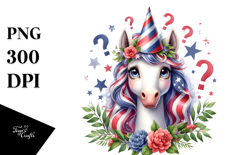 Watercolor Clipart Unicorn Whitebackground Confused Usaflag Bigeyes Partyhat Elementsnottouchingthecanvasedges