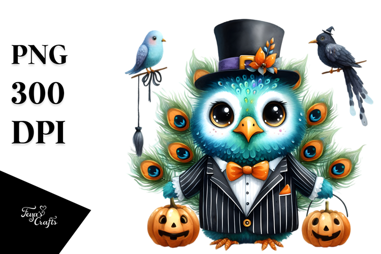 Whimsical Peacock in Halloween Suit | Clipart example image 1
