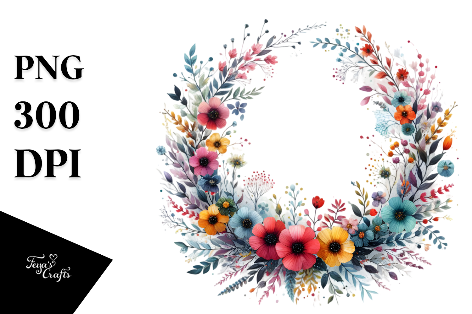 Colorful Wreath with Wild Flowers | Clipart example image 1