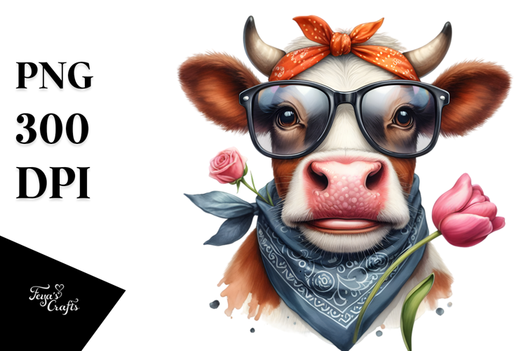 Similar Design Products to Whimsical Cow Portrait with Tulip and Rose | Sublimation