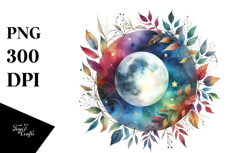 Similar Design Products to Vibrant Moon with Foliage Stars | Clipart