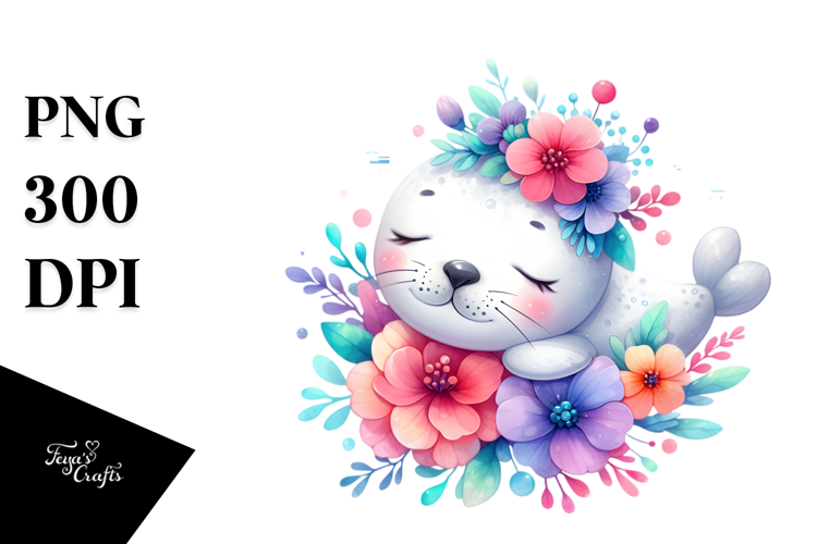 Similar Design Products to Colorful Cute Baby Seal in Flower | Sublimation | Clipart