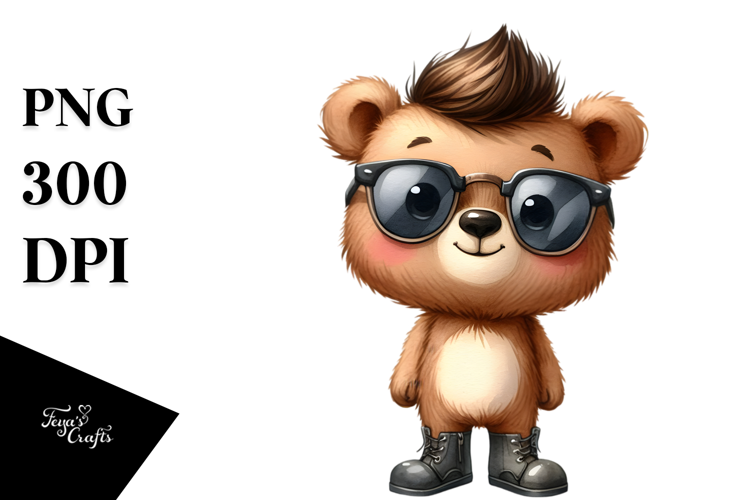 Watercolor Baby Bear Sunglasses Expressive Boots Bigeyes 2legs Standingup
