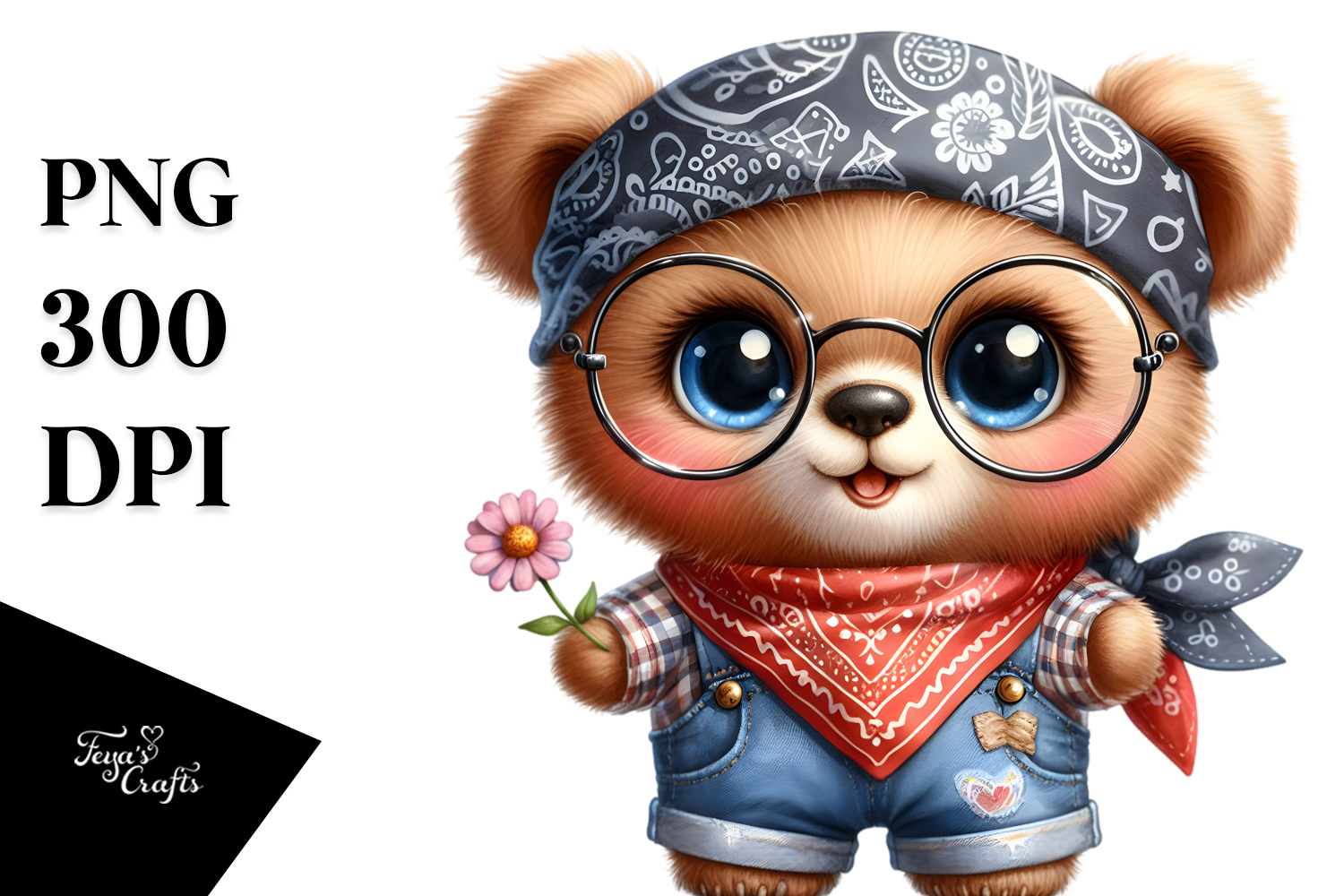 Similar Design Products to Watercolor Baby Bear with Bandana and es | Clipart
