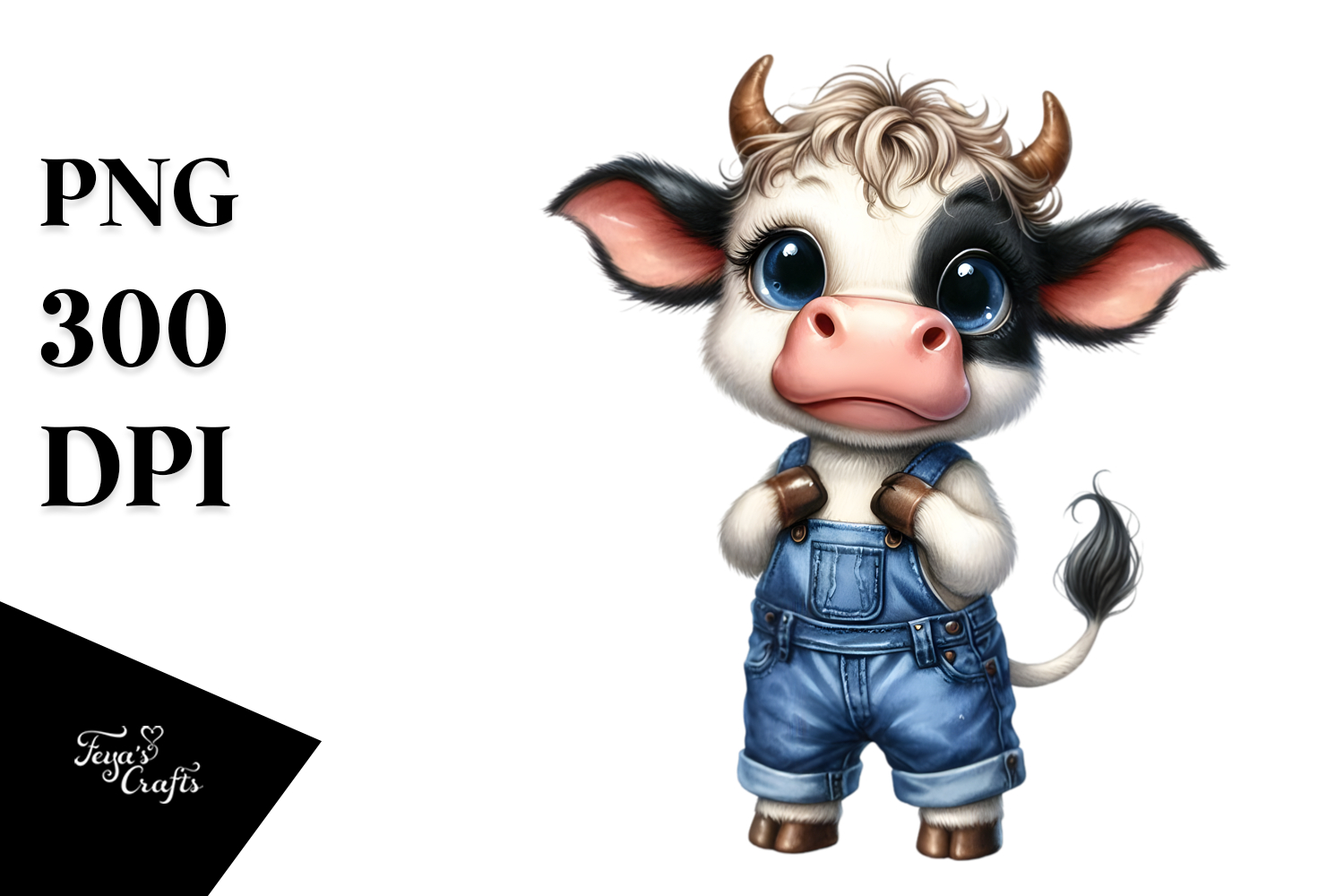 Watercolor Happy Jeans Farm Expressive Cow Whimsicalflowers Bigeyes Funnyhaircutcaricature-like