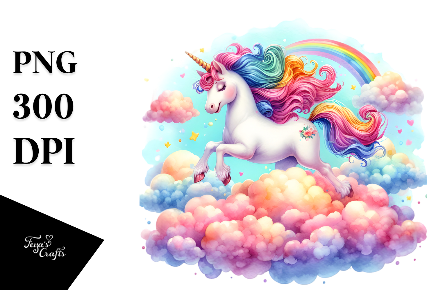 Colorful Watercolor Unicorn | Bouncing on Cloud example image 1