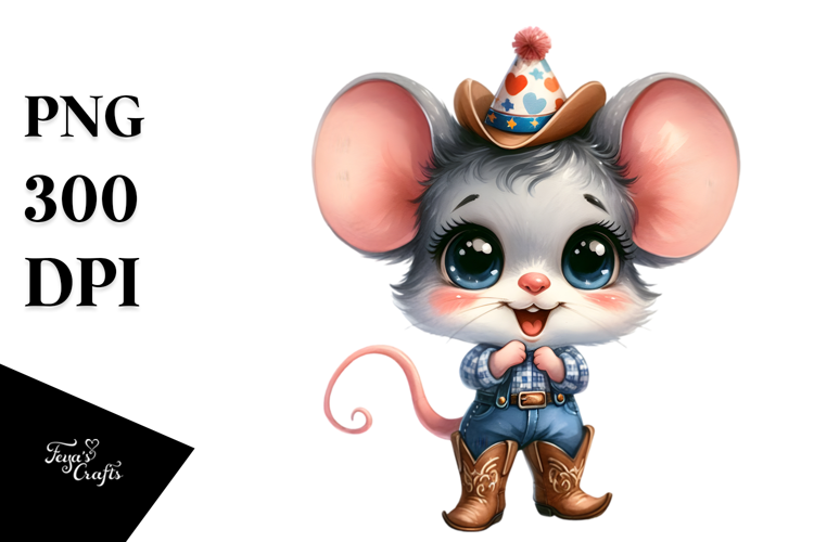 Watercolor Baby Mouse | Party Hat | Cowboy Boots