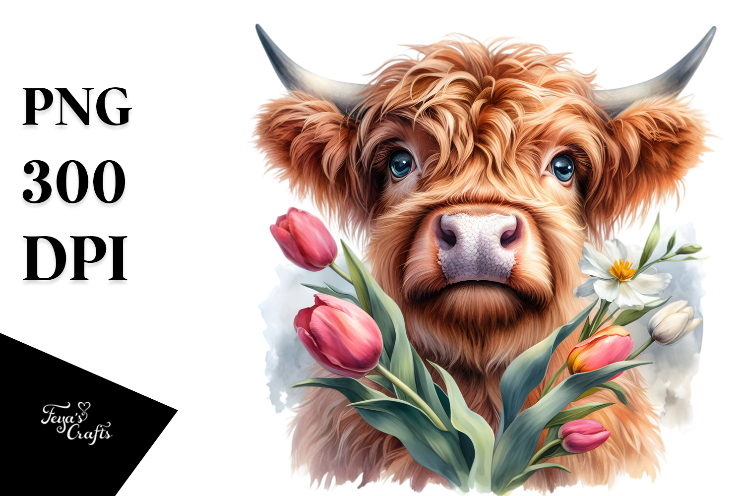 Similar Design Products to Highland Cow Portrait with Flowers | Clipart