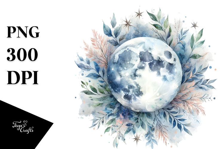 Abstract Moon Watercolor Sticker | Sublimation | Clipart example image 1
