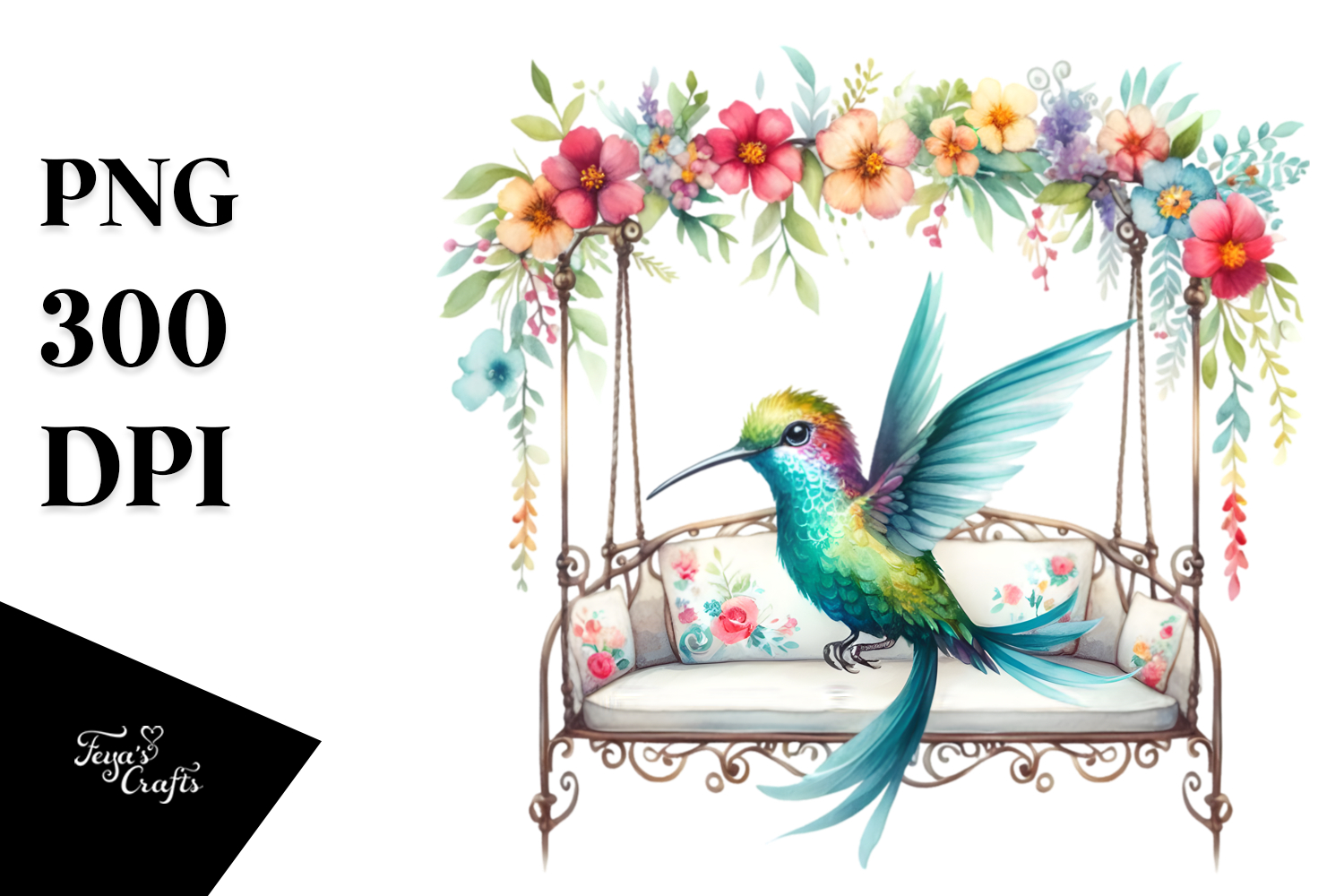 Colorful Whimsical Hummingbird on Swing Chair example image 1