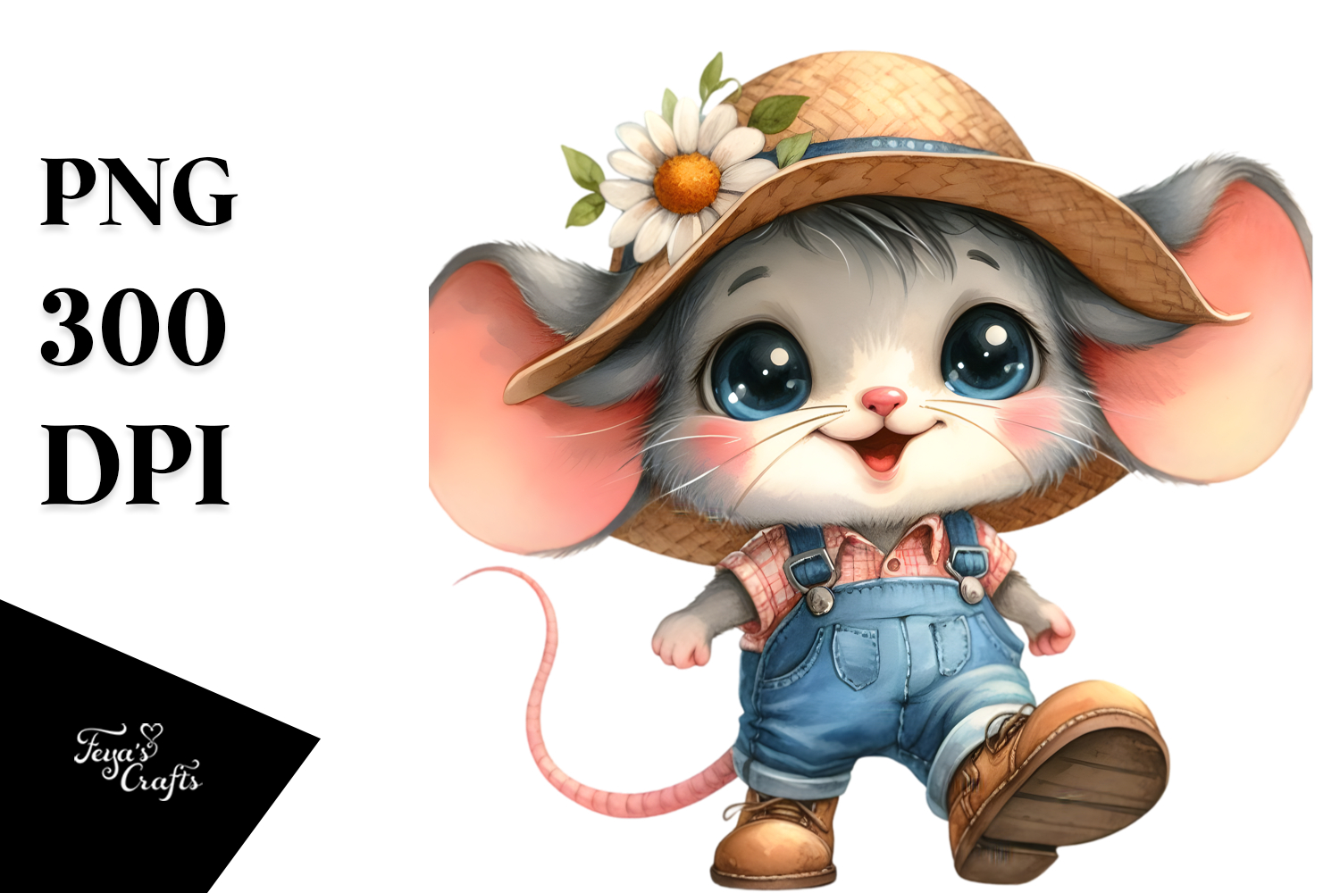 Baby Mouse with Sun Hat and Farm Jeans Clipart example image 1
