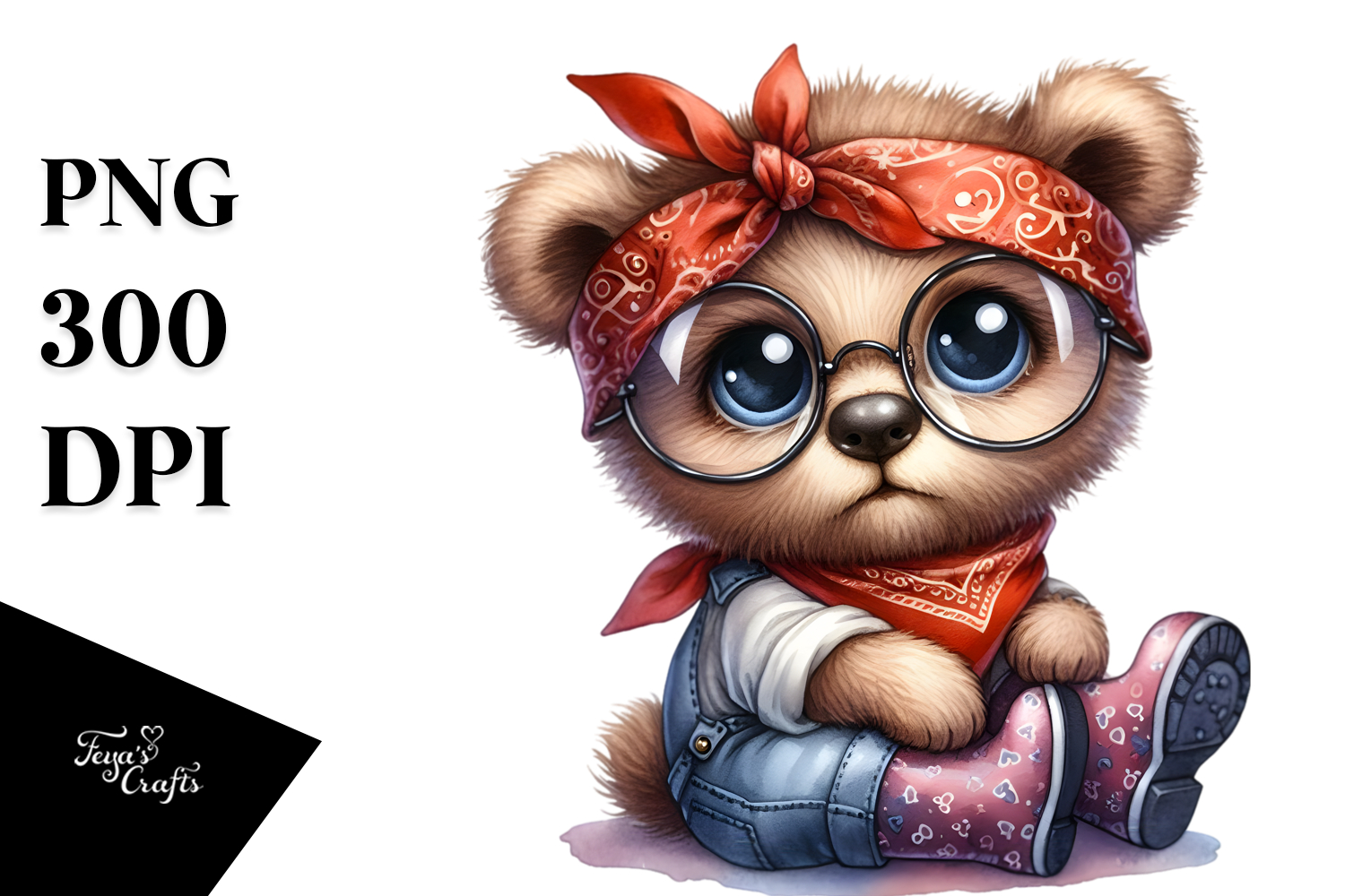 Baby Bear Clipart Bandana Expressive Sublimation Rainboots Bigeyes Fancyglasses