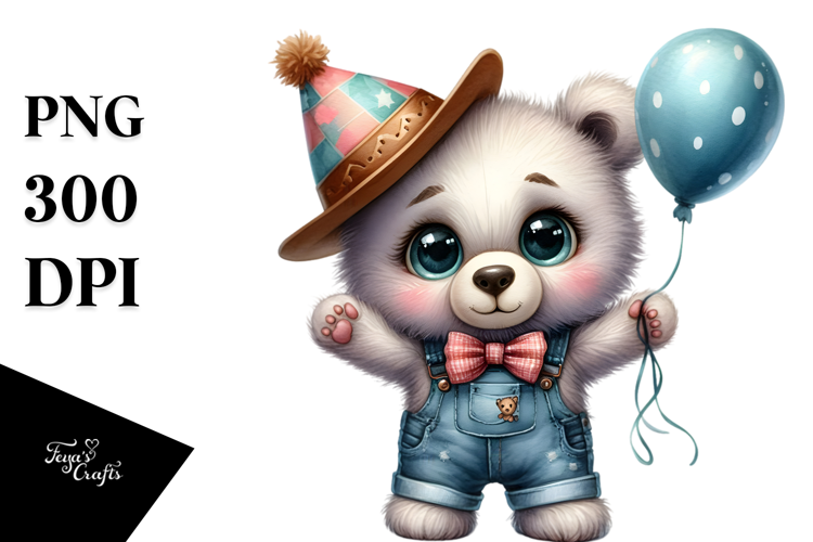 Watercolor Clipart Shy Sublimation Whitebackground Partyhat Babybear Farmjeans Standingup