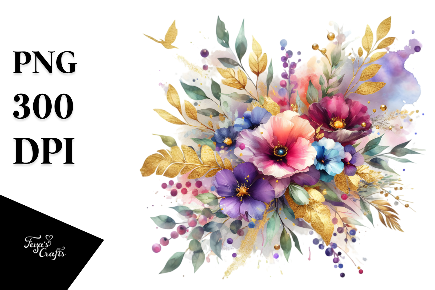 Watercolor Colorful Splash Abstract Bouquet Violet Sublimation Goldfoil Colorfulbouquet