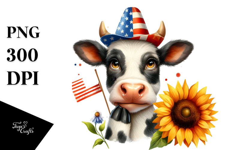 Clipart Thoughtful Sublimation Whitebackground Bigeyes Partyhat Usaflagcolors Largegoofysmile Cowportrait