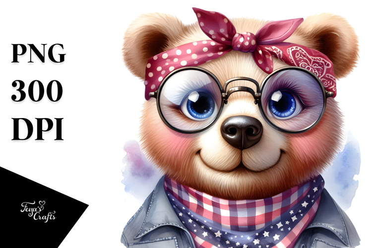 Similar Design Products to Watercolor Bear Big Eyes with Bandana Clipart