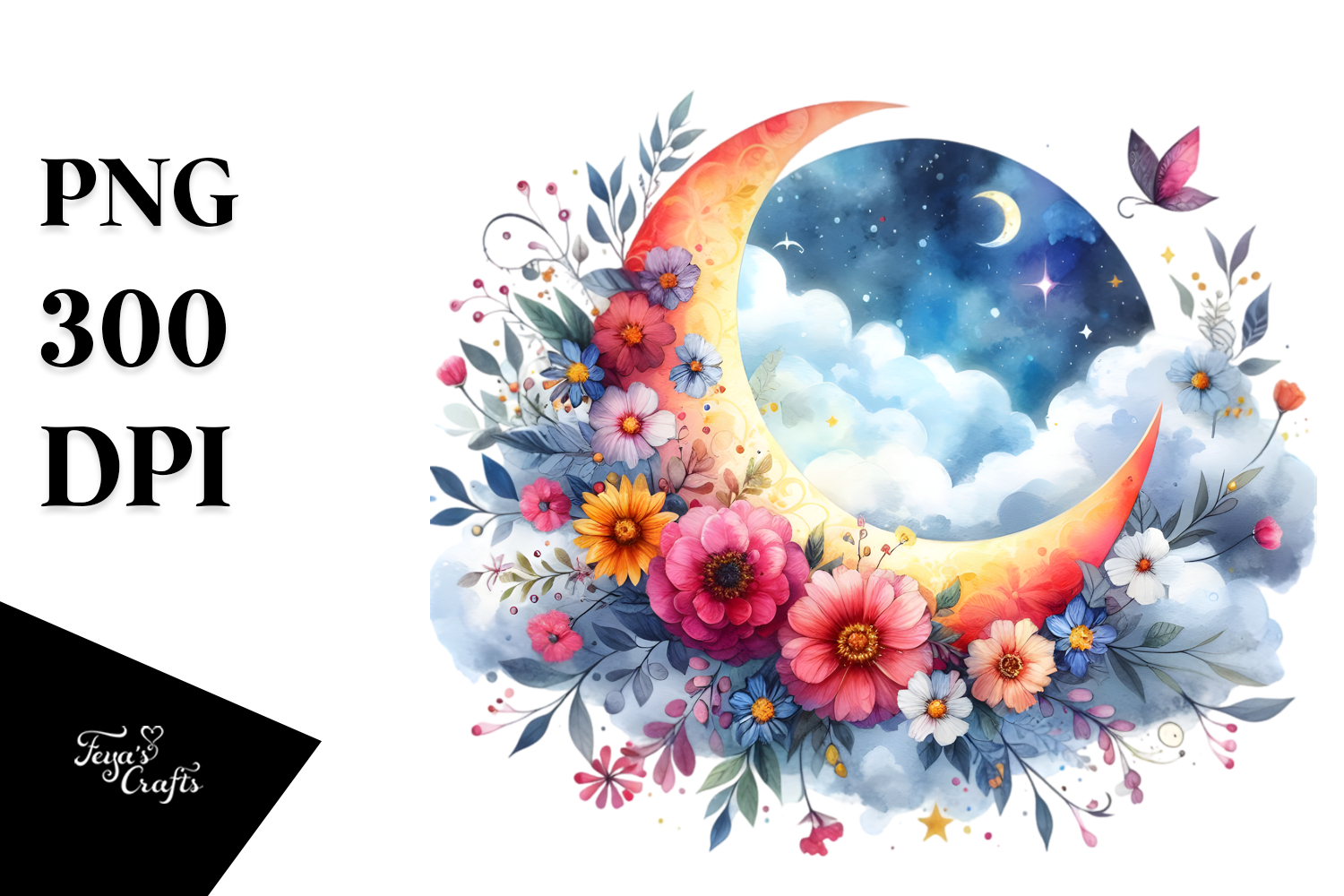 Similar Design Products to Vibrant Watercolor Whimsical Moon