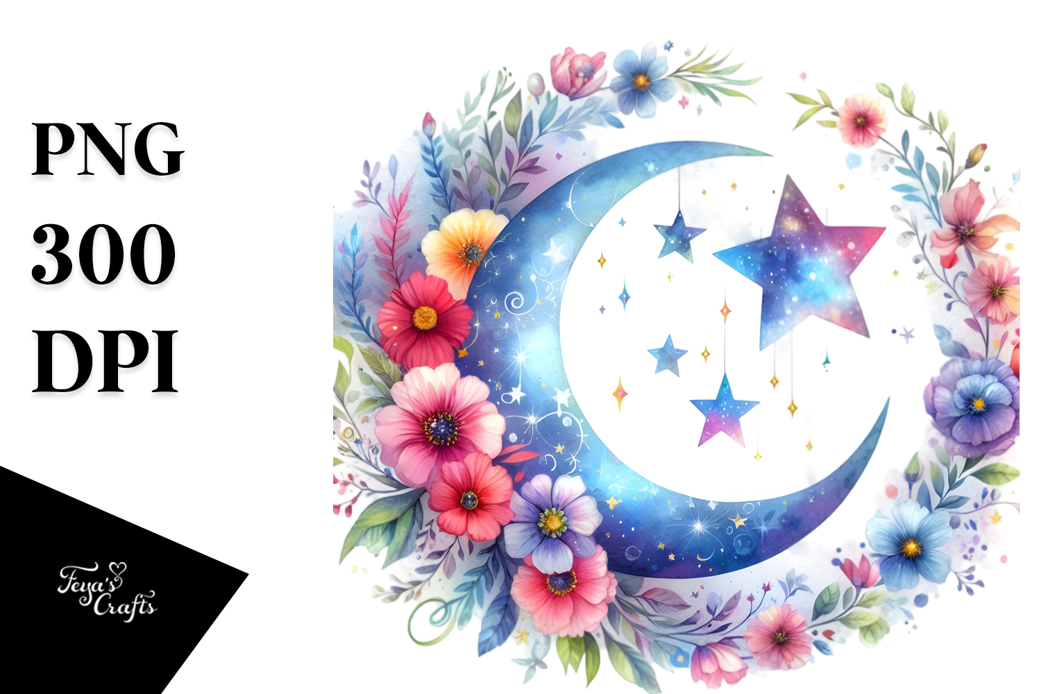 Vibrant Moon Flowers Stars Hanging Clipart example image 1