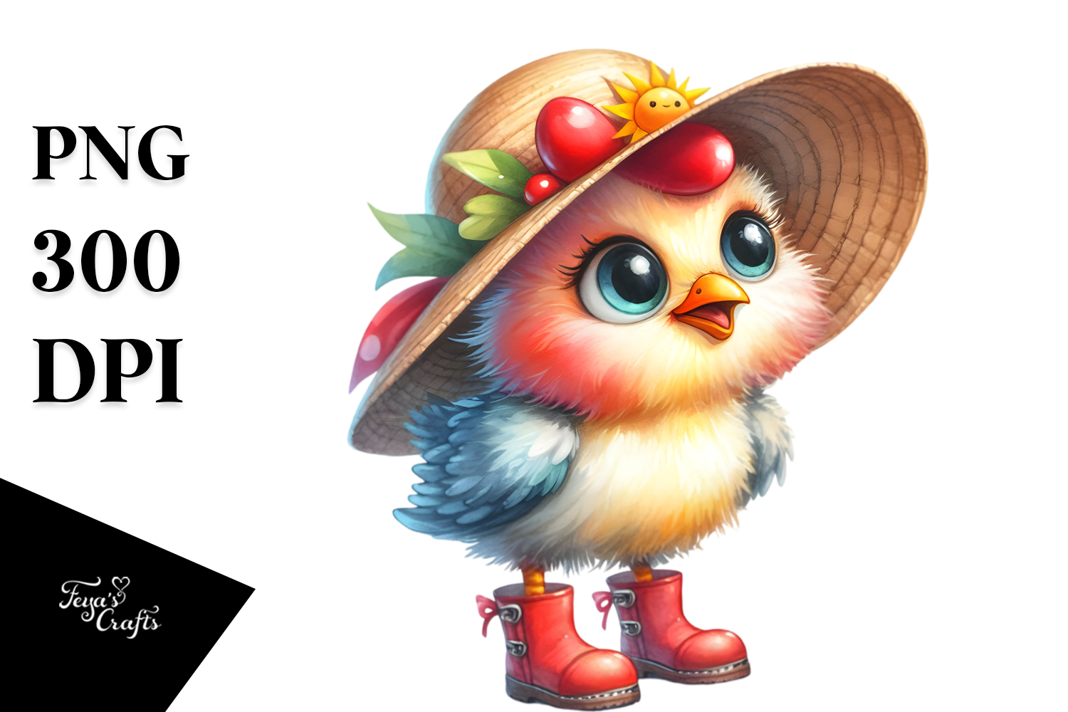 Clipart Chicken Expressive Thoughtful Boots Sublimation Sunhat Bigeyes Caricature-like