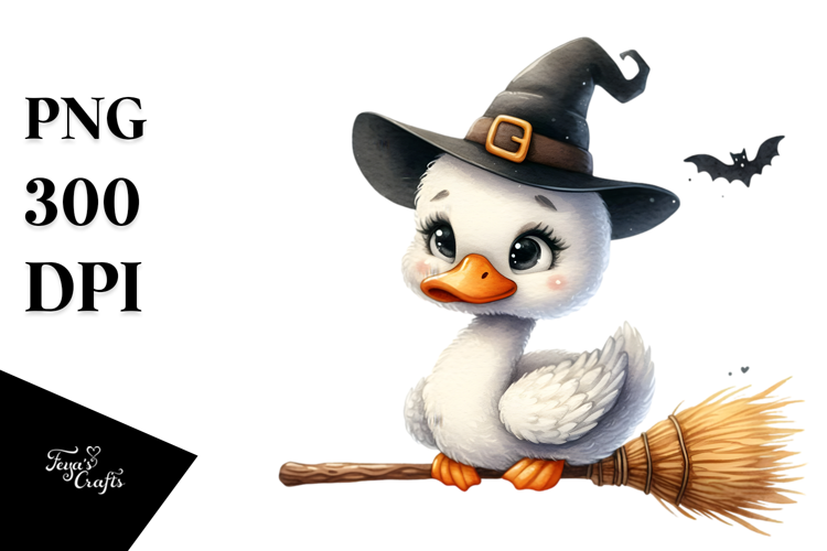 Funny Cute Swan on Witch Broom | Sublimation | Clipart example image 1
