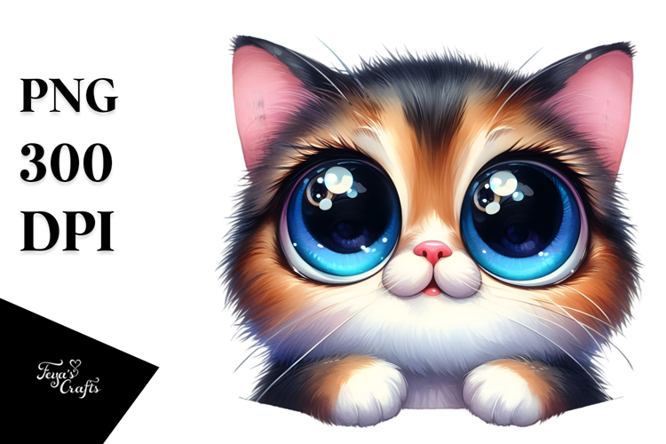 Similar Design Products to Watercolor Cat Big Eyes, Clipart