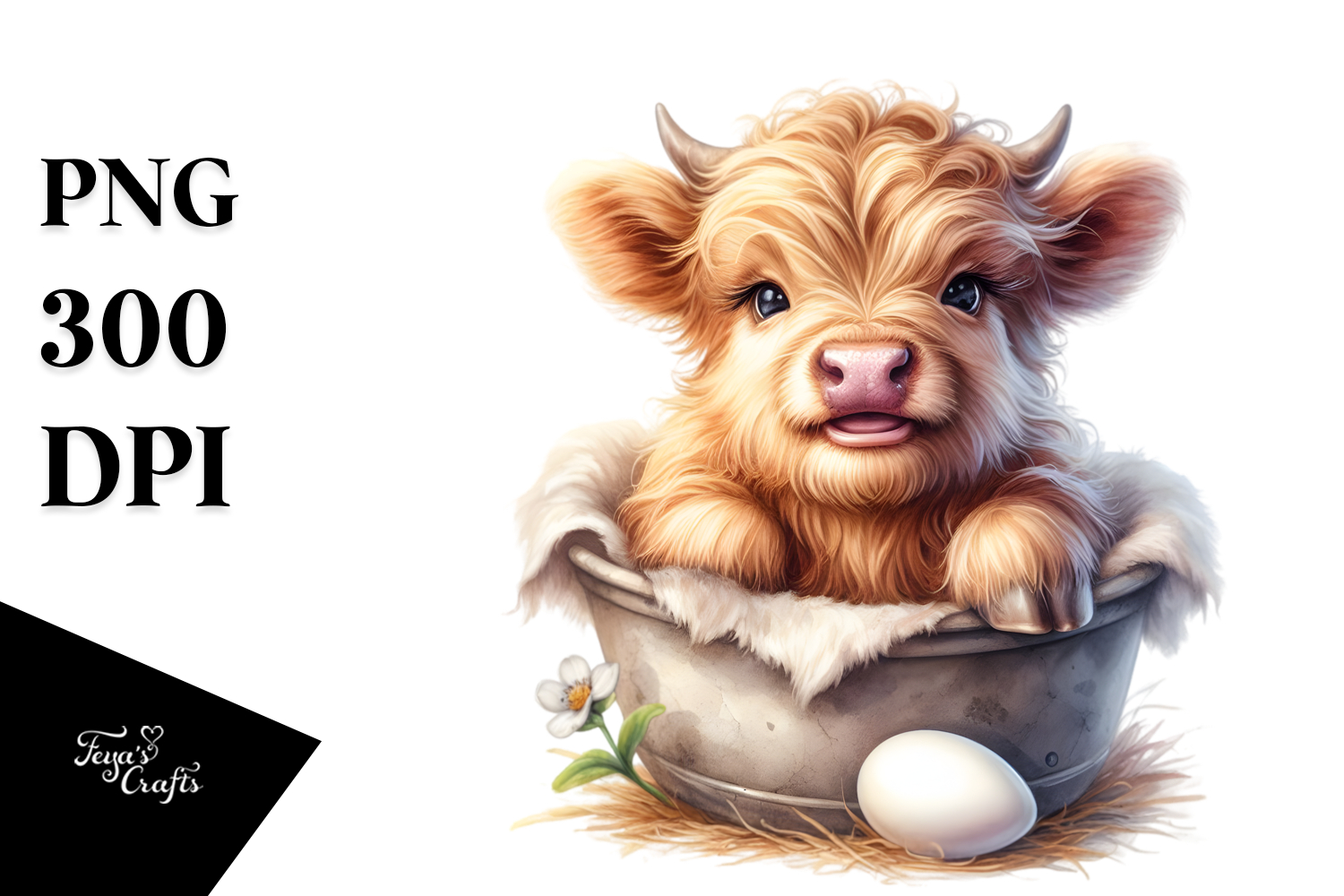 Similar Design Products to Cute Watercolor Highland Cow in Pocket | Clipart