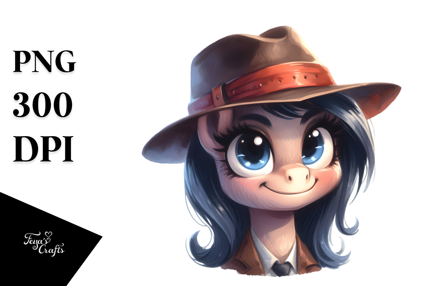 Funny Watercolor Clipart Hat Portrait Pony Proud Bigeyes Elementsnottouchingthecanvasedges