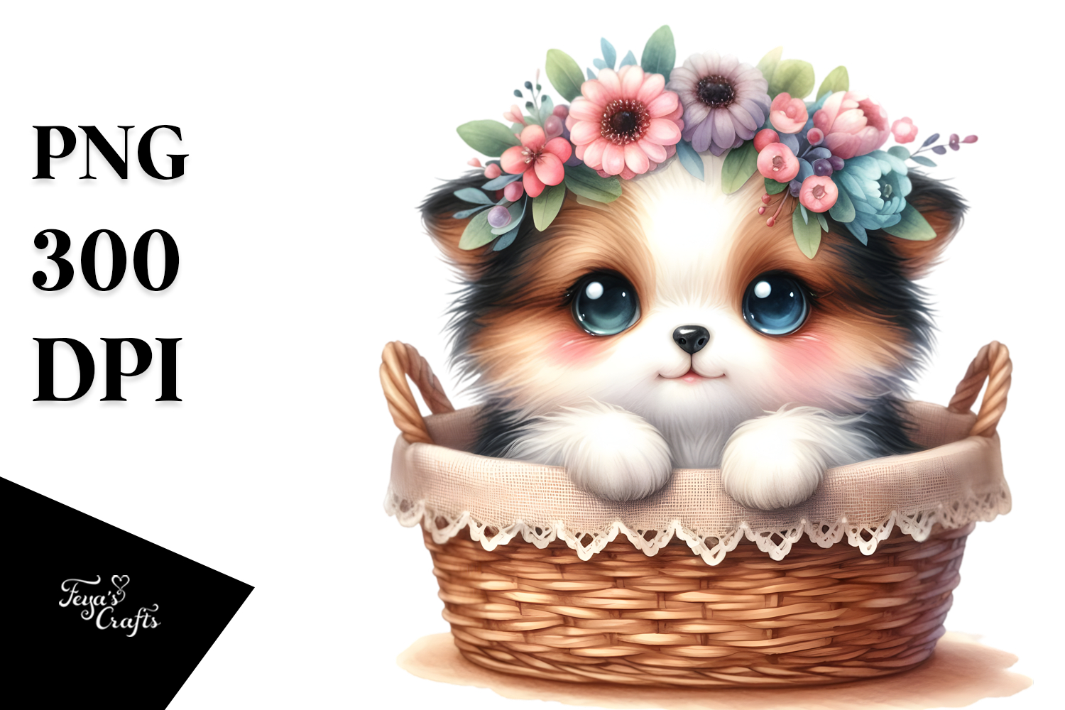 Watercolor Cute Baby Sitting Basket Smiling Small Bigeyes