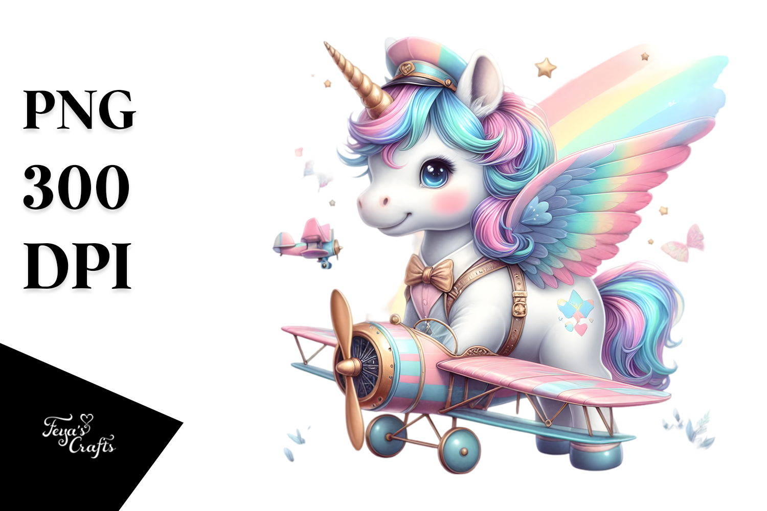 Colorful Unicorn with Biplane PNG example image 1