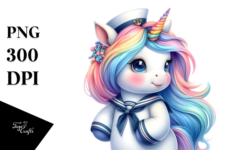 Baby Unicorn in Sailor Uniform PNG example image 1