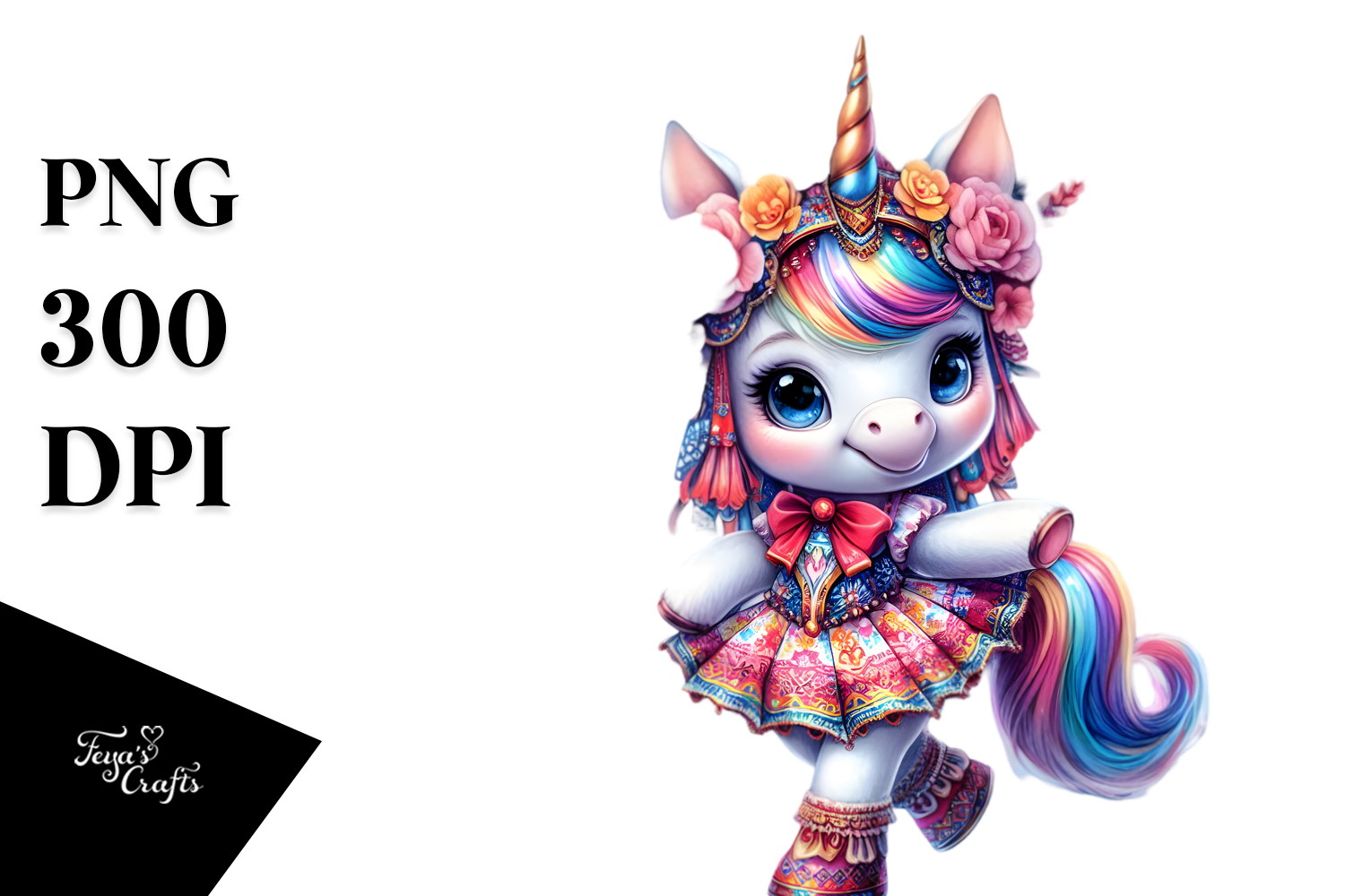 Baby Unicorn in Folk Dancer Costume PNG example image 1