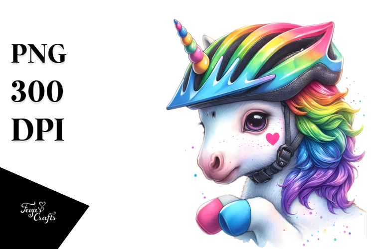 Colorful Baby Unicorn Cyclist PNG example image 1