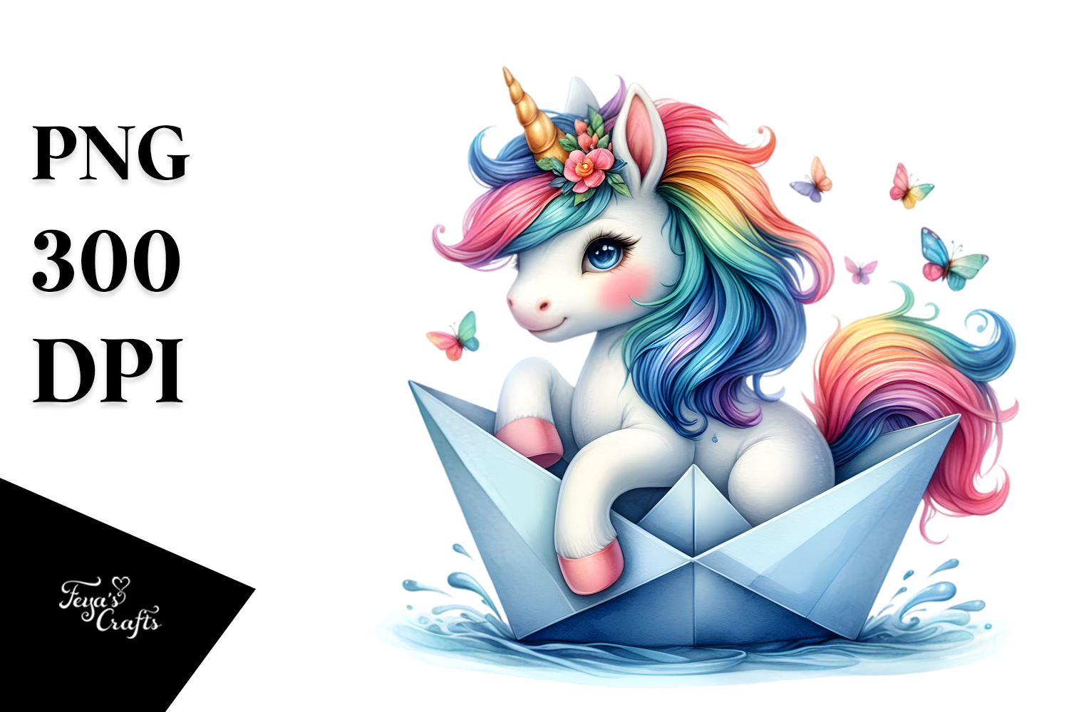 colorful Baby Unicorn Sailing in Paper Boat