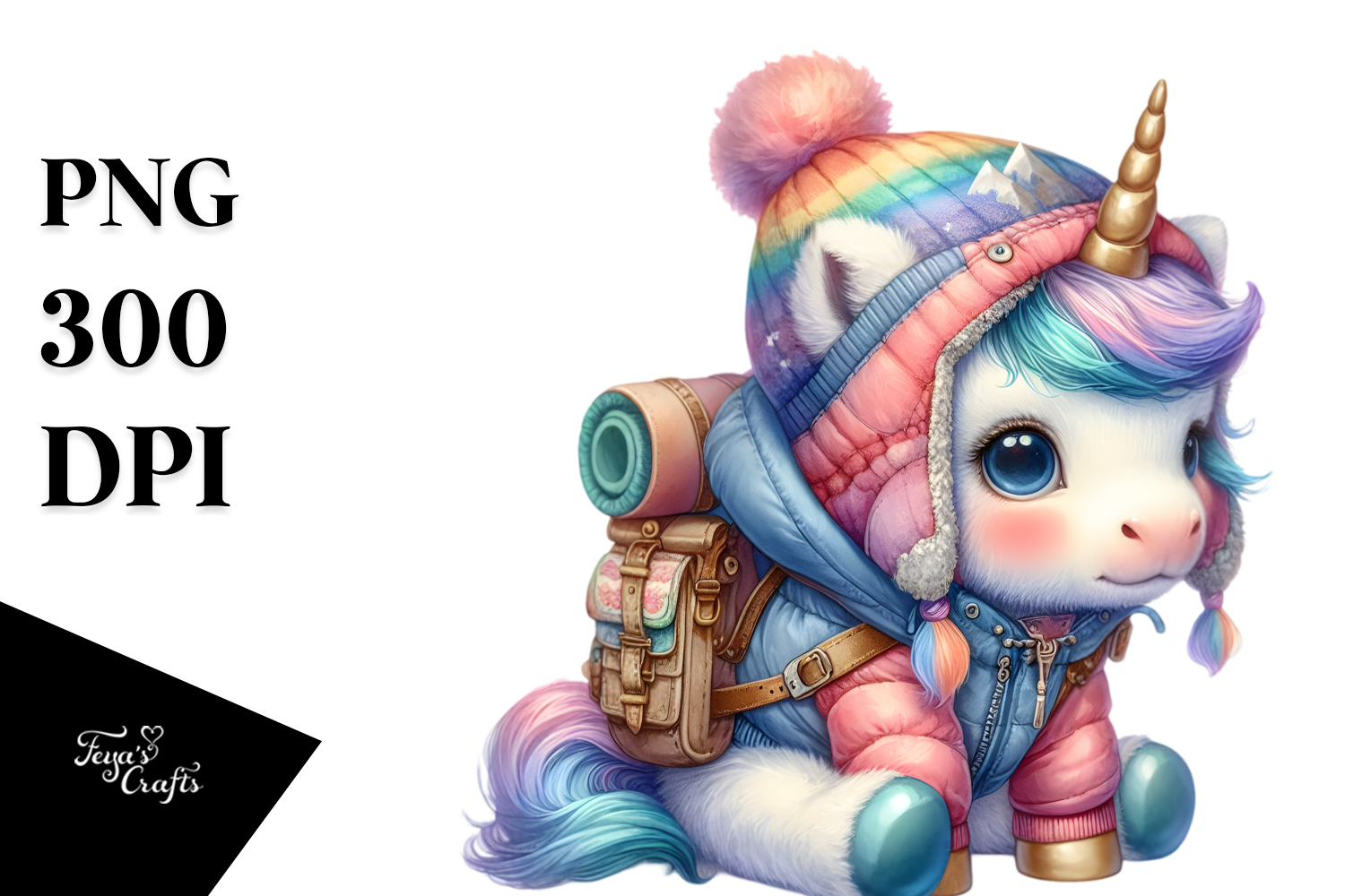 Colorful Unicorn in Mountaineer's Gear PNG example image 1